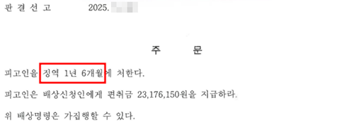 그 결과 징역 1년 6개월 실형의 유죄판결을 이끌어 냈습니다.